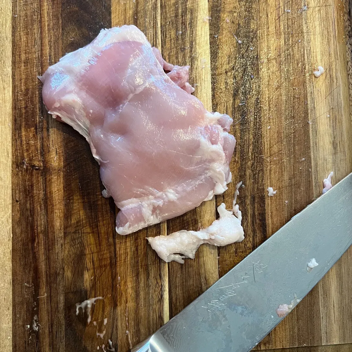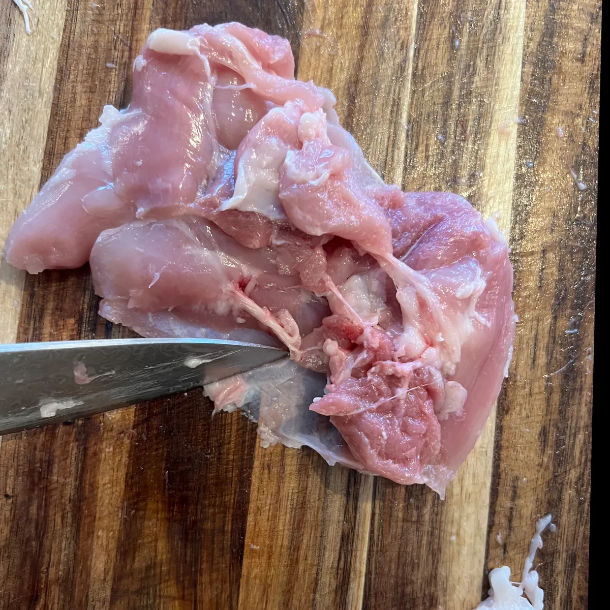 Putsa 1 kg kycklinglårfilé något och ta framförallt bort eventuella benrester som ibland finns kvar.