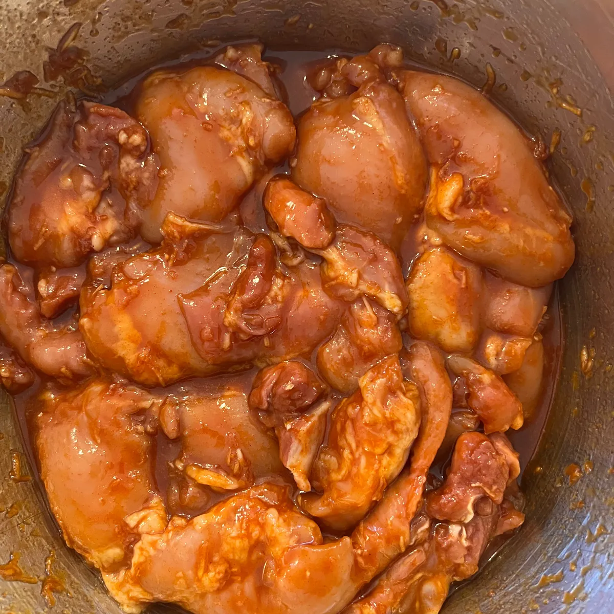 Blanda ner kycklingen i marinaden och låt stå så länge som möjligt i kylskåp, upp till två dygn.